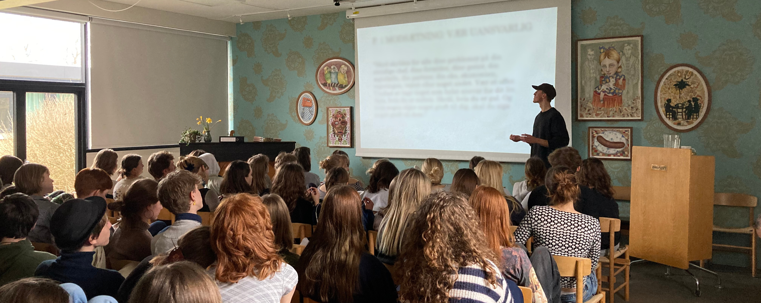 “Foredraget var veloplagt og i øjenhøjde med vores elever og gav på en jordnær måde nogle gode bud på, hvordan man som ungt menneske kan finde retning i tilværelsen og læne sig op af nogle grundlæggende anskuelser og principper, som både peger indad i den enkelte, men i høj grad også ud af imod et liv i fællesskabet og gensidig forbundethed med andre.